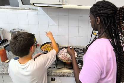 Desde as compras no supermercado, fazer sandes, preparar saladas, cortar fruta, fazer churrasco, mexer a panela, e muito mais, consoante a idade e capacidades de cada um!